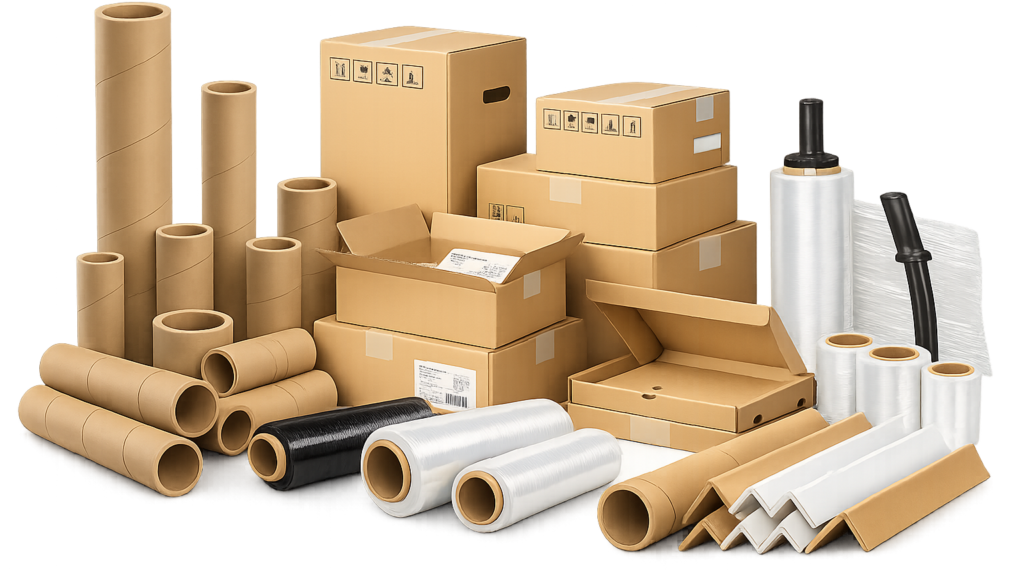 Productos típicos: Cajas de cartón, esquineros kraft, emplaye poliestretch